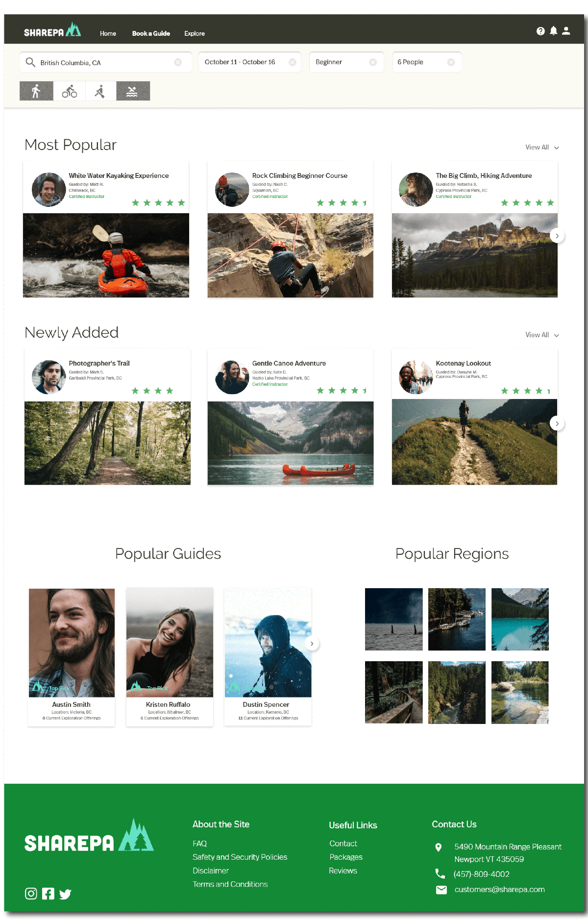 When I enter a region in the search bar, I am returned a series of results of adventures, local guides, and